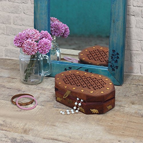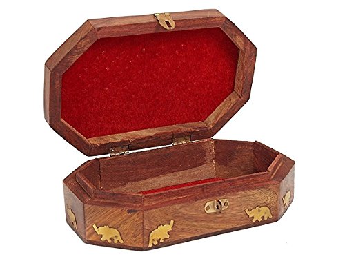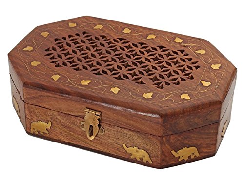 Valentine Day Special Present, Wooden Octal Vintage Box, With Jali & Inlay Design, Multipurpose Keepsake Storage Box, Earring Box, Jewelry Organizer Box, Vintage Box, Brown Color Size 8 X 5 Inch