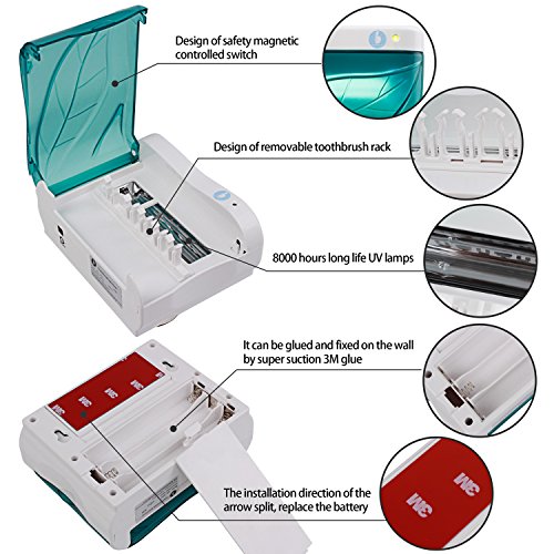 BIBNGLO Portable UV Ultraviolet Toothbrush UV Sterilizer Cleaner Wall Mounted Toothbrush Holder For Toothbrush In Home Bathroom With AC Adapter