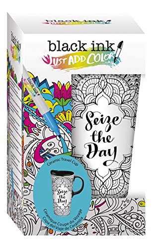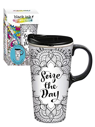 Cypress Home Seize the Day Coloring Book Ceramic Travel Coffee Mug, 17 ounces