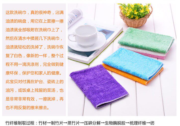竹纤维洗碗巾抹布不沾油洗碗布 不掉毛双层加厚10条