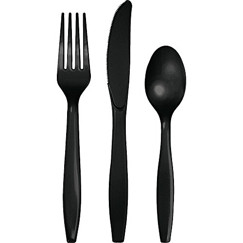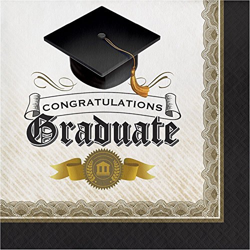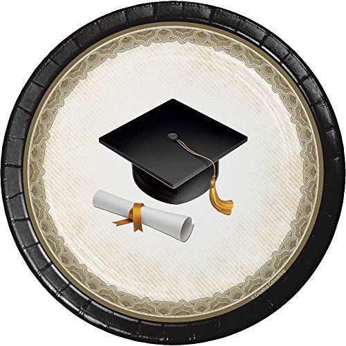-. Feature : Graduation Party Supply Pack for 8 Guests / 8 ct. 8 3/4" Plates; 8 ct. 7" Dessert Plates / 16 ct. Luncheon Napkins, 24 ct. Black Velvet Assorted Cutlery: (8 each of forks, knives and spoons) / Traditional Design Perfect for Grad School, College, or High School Graduation Celebrations / Celebrate graduation with our Classic Cap & Gown collection, a traditional design pattern in ivory, black and gold, with classic mortarboards and diplomas.