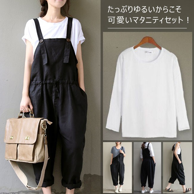 | 商品名 | マタニティ服 2点セット セットアップ リネンセット(サロペット+シャツ) 綿麻シャツ 綿麻サロペット レディース 調節できる 産前産後 |