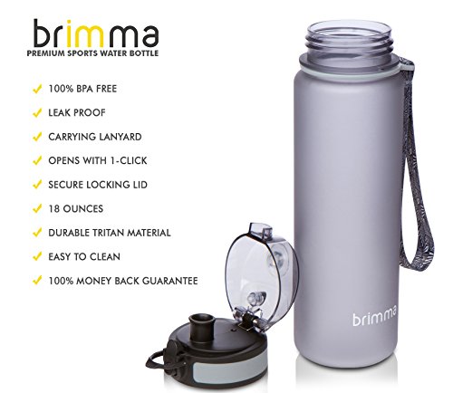 -. Feature : ✔ GET REFRESHED FAST - Brimma Premium Sports Bottle flip-top lid lets you take a quick drink while you run, workout or in the middle of the game. 100% leak proof lid to prevent leaks and spills. It's a MUST HAVE sport water bottle for the Gym, Yoga, Runners, Athletes, MMA, Crossfit, Travel, Hiking, Cycling, Tennis, Camping, Work Office, or Outdoors. / ✔ 100% NON TOXIC AND BPA FREE - Made from high quality durable Eastman Tritan copolyester toxin free food grade plastic that can hold up to tough conditions. Environmentally friendly, recyclable, reusable, and shatterproof giving you a healthy and less expensive option than bottled water making it the PERFECT GIFT for that active someone on the go. / ✔ EASY TO CARRY AND EASY TO USE - The Brimma Sports Bottle includes a convenient carrying lanyard handle that lets you wear your bottle on your wrist or attach it to your belt or bag, so you can take it anywhere. The one click spill proof lid will swing opens easily with the push of a button with one hand. Easy to clean and TOP-RACK DISHWASHER SAFE. / ✔ SMART ERGONOMIC DESIGNED, PERFECTLY SIZED BOTTLE - The stylish and ergonomically shaped Brimma Sports Bottle fits comfortably in your hand and perfectly into your cup holder or water bottle bike cage. The 18 ounce, 500 ml, size is perfect for life on the go. Each sport hydration bottle comes in a FREE Gift Box making it an great present or gift option! / ✔ SATISFACTION GUARANTEED At Brimma, we want our sports bottle to exceed, not just meet your expectations. If you're not 100% satisfied with your purchase, let us know. WE'LL GIVE YOUR MONEY BACK - TODAY! Backed by our LIFETIME GUARANTEE.