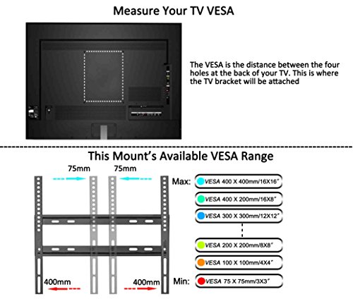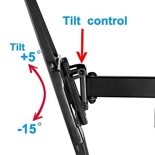-. Feature : Fits for most of 26-55" LCD/LED/Plasma TVs up to weight of 66 lbs and up to VESA(mounting hole pattern) 400x400mm (Fits for VESA 75X75, 100X100, 200X100, 200X150, 200X200, 300X200, 300X300, 400X200, 400X300, 400X400mm).Please check VESA (mounting hole patern), stud spacing, possible blocked cable/input and TV weight P.R.Ior to making purchase decision to determine whether this TV wall mount fits your TV and the installation application. / +5°/-15° Tilt, +/-90°Swivel (Maximum swivel angle depends on TV size)and +/-3° rotate for maximum viewing flexibility, Post-installation level adjustment allows the TV to perfectly level. / Fits for concrete wall/8" or 16" wood stud, NOT for dry wall installation! if your stud spacing is 18" or 24" please purchase our extension bracket MD5231 for wall plate extension accomondation. Articulating arm retracts 3.6" low profile, extends 15" from the wall. / All hardware, 6' HDMI cable, bubble level included. Cable management on arm with Velcro cable ties. / Automatic robot welding technology makes whole unit sturdy, ensures mounted TV stable and secure. Smooth welding joint makes whole unit with good appearance.