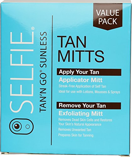 Apply Your Tan-Applicator Mitt-Quick and easy to use, Selfie®Applicator Mitt is perfect for helping you achieve a beautiful streak free tan. Ideal to use with mousses, lotions and even sprays, this mitt provides a water-resistant barrier to protect your hands from any unwanted staining.;Remove Your Tan-Exfoliating Mitt-Made out of 100% naturally derived fiber, the Selfie®Exfoliating Mitt will magically remove any fake tan and dead skin cells to restore your skin's natural appearance. Can be used as a dry buff or with water to prepare skin, ready for your next tan.