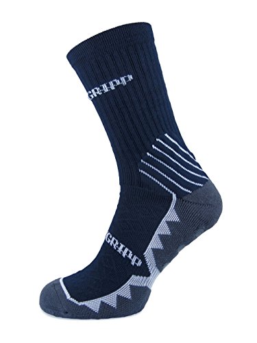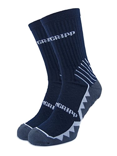 Studio : PREMGRIPP Publisher : PREMGRIPP Binding : Apparel Product Description Premgripp Sports Socks - calf length navy socks with white trim detail. Latest Independent Feedback... Premgripp socks have gone down really well with both Leo and James by the way. James has played a lot of tournaments recently and he thinks that they?have helped his performance. He's had massive growth spurts (he's 12 and nearly my height) and it's hammered his footwork (a boy suddenly hauling a bloke's frame about)... but suddenly - and in the last week / since wearing the socks - things have improved again. Some of it is probably him getting stronger and growing into his body, but he reckons he can push off / change direction better because his foot is contacting with the shoe better. I think because his feet have grown, they're long, narrow and kind of swilling about in his shoes... which need to be a mens size 9.5 for length, but are probably wider than he needs because they're designed around the 'foot spread' of a fully formed fat bloke like me. The fact that the socks grip the sole of the shoe means he's stopped shifting when he plants / pushes off. I've been too rough lately to play much, but I had a quick go in some just before taking ill, and I understand what he was saying... Hence me being able to translate from '12 year old grunt' into something approaching English. I played a couple of sets on one of our artificial clay courts and I felt much more confident sliding into shots wearing them. Because of my dodgy knee, I'm a bit nervous sliding normally (the prospect of it going wrong and me sticking will wreck me for weeks potentially) but again because contact with the inside of the shoe is good - and kind of 'fixed' - I felt a lot better doing it. And once the shoe has found grip through the clay (I call it 'clay' it's a fine sand over a carpet-l 0