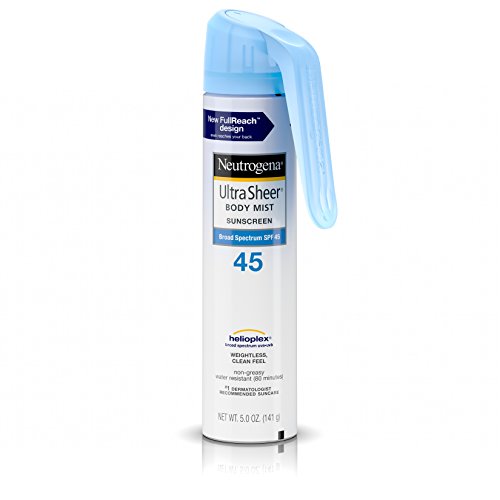 Neutrogena SPF 45 Ultra Sheer Body Mist Fullreach Sunscreen Spray Broad Spectrum, 5 Ounce (Pack of 3)