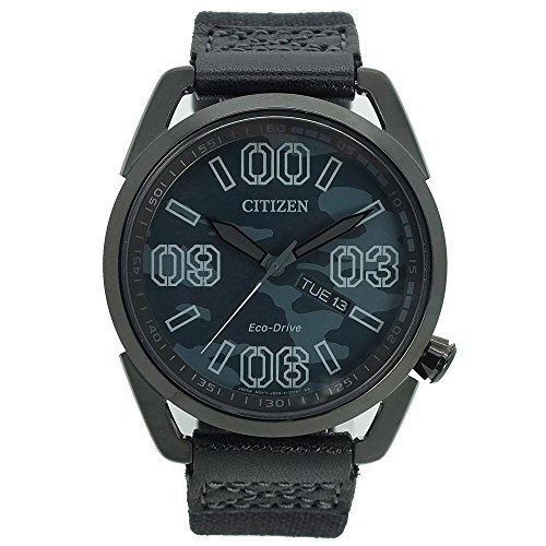 -. Title : Citizen AW0018-00F Men's Black Nylon Watch with Blue Camo Dial