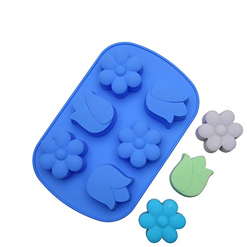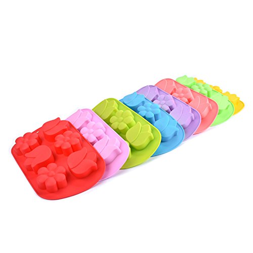 Always Your Chef 6-Cavity Silicone Baking Cups Handmade Soap Mould, Candy Molds & Chocolates Molds & Ice Cube Trays, Muffin Cups Flowers Shaped, Random Color