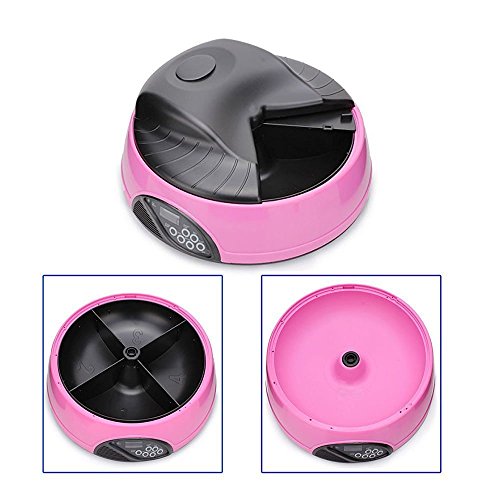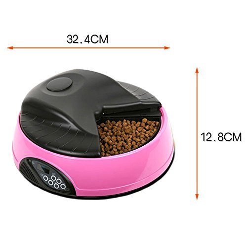Studio : Buwico Publisher : Buwico Binding : Misc. Product Description Desription: It can feeds your pet according to the time and quantity you preset. It can last to 4 days. Automatic Pet Feeder can be programmed to open 4 different times. At each meal time, the cover will open for the first feeding and your prerecorded voice message will be played to let your pet know it's time to eat. The dish, which contains four large food trays, will remain open until the next programmed feeding time. At the preset time, the dish will cycle to the next full food tray, allowing your pet to eat at their own pace. An easy way to program your pet's meals while at home or away. Feature: Build-in clock with easy to read LCD Built-in microphone, speaker and low battery indicator Comes apart for easy cleaning Durable ABS construction Easy-to-use control panel Four "C" Batteries Required (not included) Specification Rated Voltage: 6V Item Dimensions: 32.4 x 12.8 CM (D x H) Item Weight: 1.41 KGS Capacity: 475ml / 250g / 2cups x 4 Lamp Body Material Material: High quality ABS Packing: Gift Box Gift Box Size: 33 x 15.5 x 32.8 CM Certificate: CE, RoHS approval Package Content: 1x Four Meal Tray Programmable Timer Automatic Pet Dog Cat Feeder