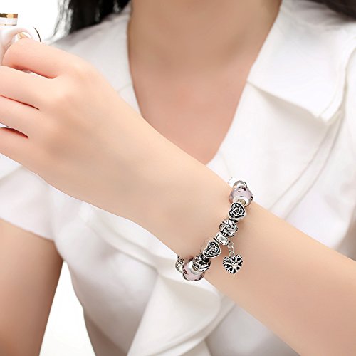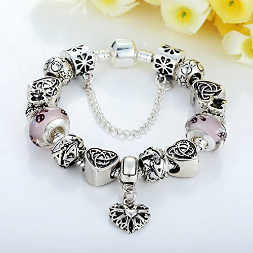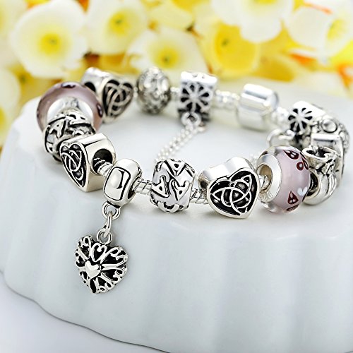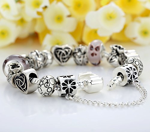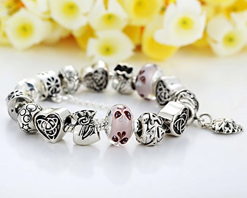 - Feature : Material : Silver Plated + Gold plated + glass.Length :21cm / The Removable beads charm bracelet include 2 Hand-painted glaze beads, 12 silver plated beads, 1 heart dangle charm beads / The charms bracelet is so elegant, beautiful and so Chic! Suitable for daughter, sister, mom, girlfriend or wife. / Best gift for Christmas,Mother's day ,Valentines'day, Graduation,Prom,Birthday,Anniversary. / One free beautiful packaged marked with Bamoer