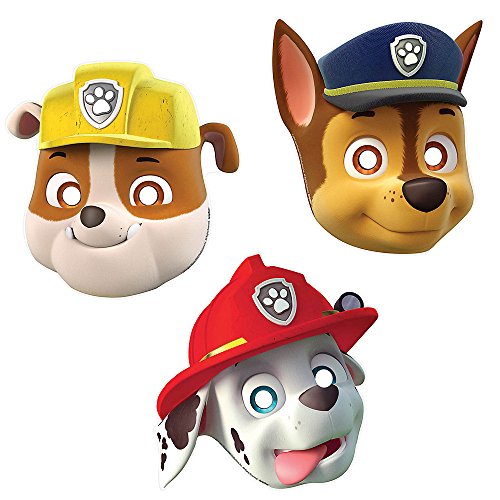 The elastic strings and eye punchouts make these cardstock masks easy to wear all through your fun PAW Patrol birthday party!