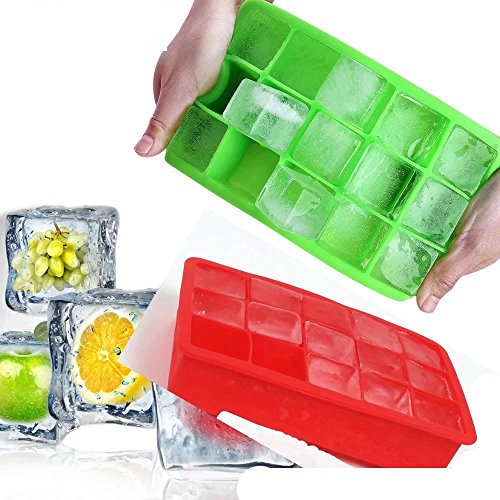 2 Pack— 15 Ice Cubes Tray Mold-Silicone-Candy Mold Cake Mold Chocolate Mold, Green and Red