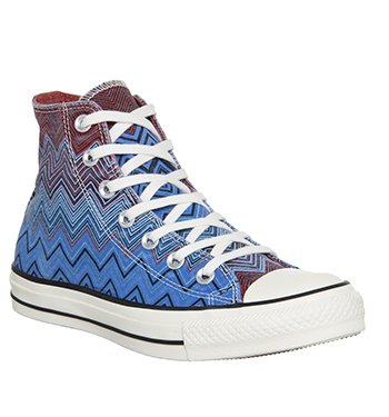 The Converse Chuck Taylor All Star Washed Canvas High Top Sneakers are composed of a durable canvas upper. Missoni inspired design will most likely cause some heads to turn. Rubber toebox for increased protection. Non-marking rubber outsole provides traction. OceanFeature