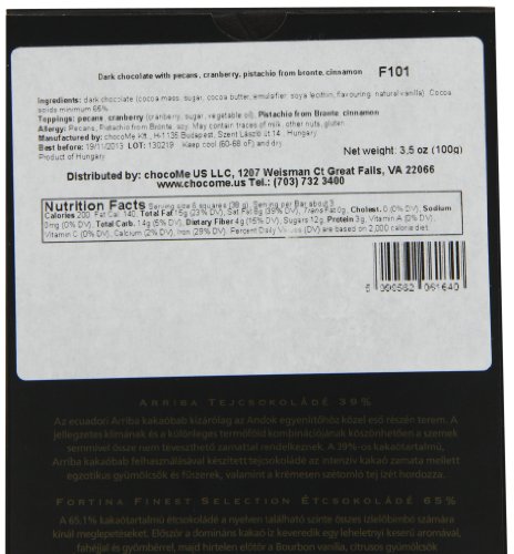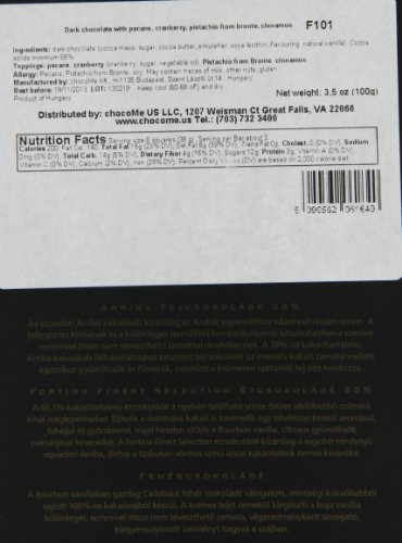-. Title : Chocome Fortina Finest Selection Dark Chocolate 65.1%, Cinnamon, Pecans, Cranberry and Pistachio From Bronte, 3.5 Ounce