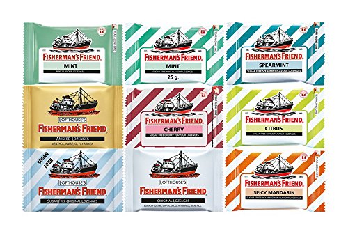 -. Title : 9 Flavours of Fisherman's Friend - Fisherman's Friend Mint, Sugar Free Spearmint, Sugar Free Mint, Original, Sugar Free Citrus, Sugar Free Original, Sugar Free Cherry, Sugar Free Mandarin and Aniseed (9 Packs)