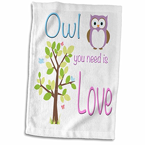 3D Rose Owl You Need Is Love Hand/Sports Towel, 15 x 22"