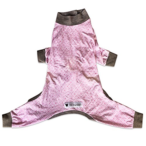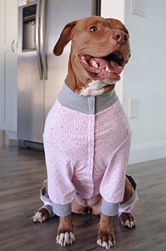 -. Title : Tooth & Honey Large dog pajamas/ one piece / lightweight pajamas / pink honeycomb / pit bull pajamas / velcro chest