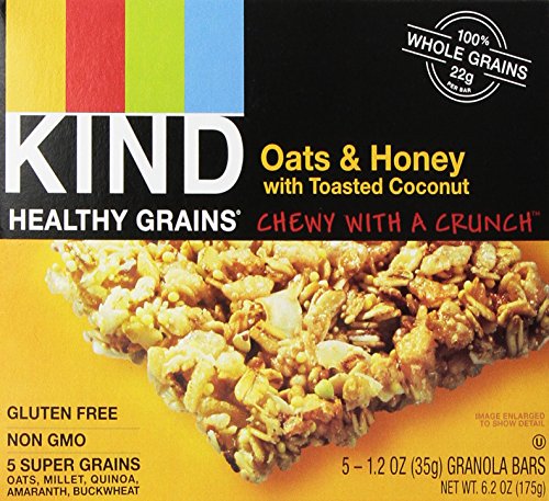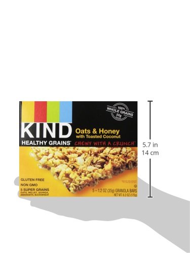 KIND Healthy Grains Granola Bars, Oats and Honey with Toasted Coconut, Gluten Free, 1.2 oz Bars, 5 Count