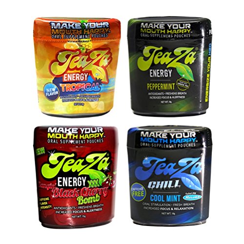 -. Title : NEW Teaza Herbal Energy Pouch Mixed (4 pack) Peppermint-Tropical-Chill-Banging Black Cherry