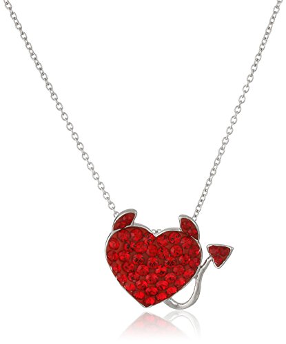 Sterling Silver Swarovski Light Siam Crystal Heart Devil Pendant Necklace, 18"