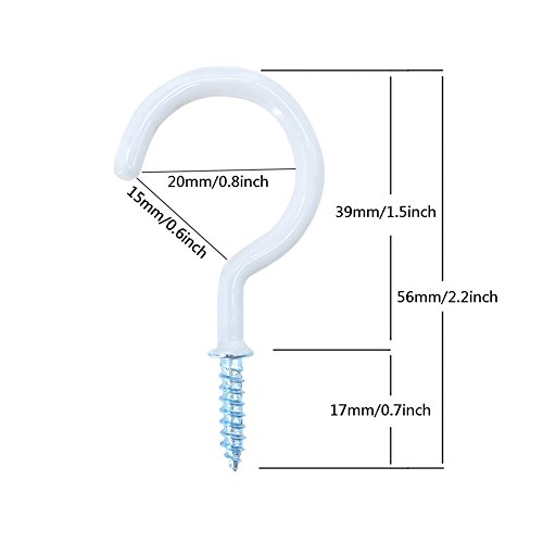 40pcs 1-1/2" Vinyl Coated Screw-In Ceiling Hooks Premium Steel Screw Hooks for Cup Hook (White, 1-1/2 Inch)