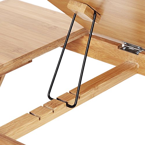 -. Title : Songmics 100% Bamboo Portable Laptop Desk Foldable Breakfast Serving Bed Tray w' Tilting Top and Drawer ULLD00N