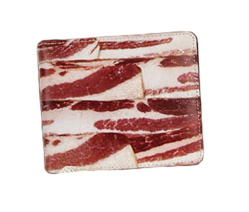 -. Feature : Deluxe Bacon Wallet / Measures 4-1/4" x 3-3/4" When Closed / Bifold Design Conveniently Holds Cash & Cards Securely / Sleek Faux Leather Material / Perfect For "Bringing Home The Bacon!"