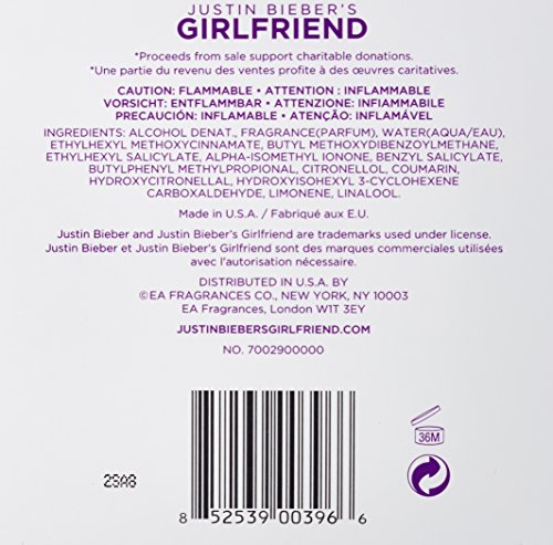 Studio : Justin Bieber Publisher : Justin Bieber Binding : Misc. Product Description GIRLFRIEND is an enticing fragrance made to get your heart racing as you experience that feeling of getting personal with Justin. One spray and you'll finally experience the exhilaration of holding on and never letting go. Every touch, every breath?all captured in a flirty, new scent. Dare to get closer?