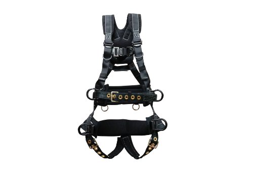 -. Feature : Six D-rings: one aluminum 70 degree D-ring at back and two on hips, two aluminum D-rings on seat strap, one steel D-ring on chest strap / Quick-connect buckles on chest and tongue buckle on leg straps / For use fall arrest, positioning, suspension, ladder climbing / Made of nylon and polyester / Size: medium