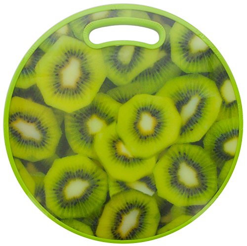 - Perfect for preparing all kind of foods, this Round Kiwi Print Cutting Board features a thick plastic board with a pretty kiwi fruit print. Includes a cutout handle. Non-porous and odor resistant