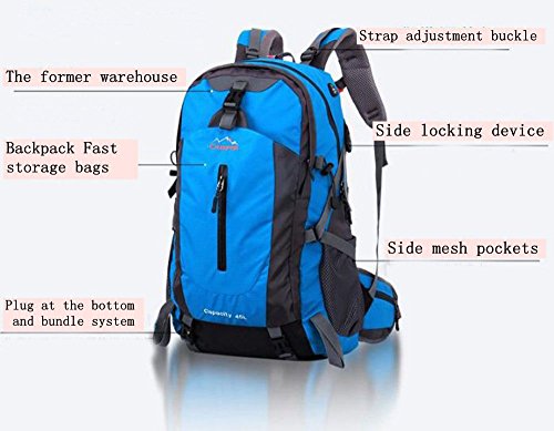 -. Feature : Material: The Main material is an advanced grid super light wear - resistant polyester fabric / Dimensions:22.8X8.6X14.1INCHS, Capacity: 50L,19.2X9X13INCHS, Capacity: 45L, / Lightweight strap design, breathable and comfortable, easy to carry / The shoulder straps and back cushion are three different materials combine seismic pressure, breathable comfort / Suitable for hiking camping climbing traveling cycling all outdoor activitie,