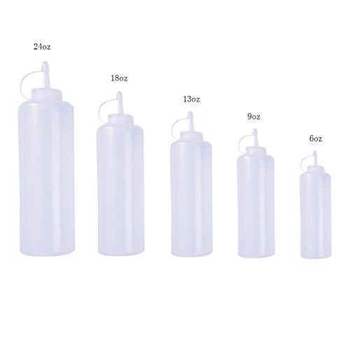 Specifications: 1. Material: Plastic can be installed spices type, liquid seasoning. 2. Capacity: 6 oz / 180 ml, 9 oz / 270 ml, 13 oz / 390 ml, 18 oz / 540 ml, 24 oz / 720 ml 3. Size: ( High * Diameter ) 6 oz: about 16 * 5.5 cm / 6.30 * 2.17 in 9 oz: about 19 * 5.5 cm / 7.48 * 2.17 in 13 oz: about 21 * 6 cm / 8.27 * 2.36 in 18 oz: about 23 * 6.3 cm / 9.06 * 2.48 in 24 oz: about 25 * 7 cm / 9.84 * 2.76 in Features: Plastic squeeze bottle dispenser with cap, safe and clean. Use as sauce, oil, vinegar, ketchup, mustard, mayonnaise dispenser Great for restaurant and home kitchen use Package Included: 5 x Squeeze Bottles 0 |