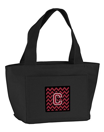 Caroline's Treasures CJ1052-CBK-8808 Letter C Chevron Garnet and Black Insulated Lunch Bag, Large, Multicolor
