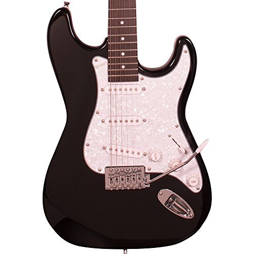 -. Feature : Sycamore Body with and 3-Ply Pickguard / Maple c-shape neck with Rosewood fingerboard, 21 medium jumbo frets and Dot position inlays / 25.5" scale length; 42 mm nut width / 5-way selector switch, Synchronous tremolo bridge, 3 single-coil pickups: 1 master volume, 2 tone controls / Includes: ChromaCast Clip-On Tuner, Strap, Pick Sampler, Stand, 10ft Cable, 10-Watt Amp, Padded Gig Bag & Lesson. (Tuner, picks & cable colors may vary.)
