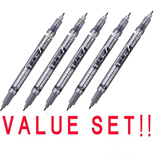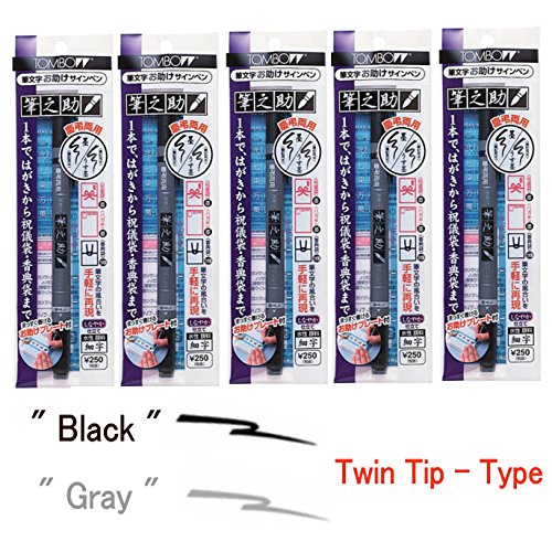 Tombow Fudenosuke Brush Pen Twin Tip, Black & Gray, 5-Pack Value set (With Our Shop Original Product Description)