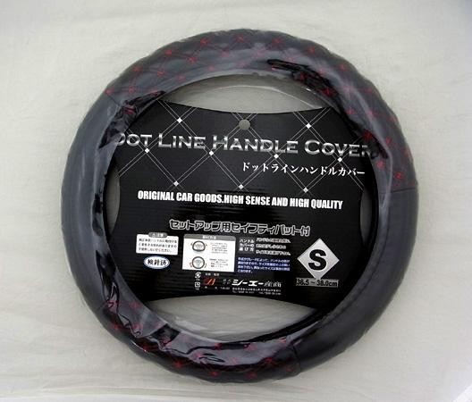 上下にドットラインの模様があるハンドルカバーです。装着も簡単にでき、車内をオシャレにチェンジできます★