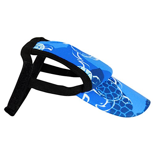 -. Feature : Sun protective dog visor hat with hook and loop velcro closure to keep hat on, the perfect sun accessory to help cover their eyes while on their daily walk / Made from UPF 50+ sun protective fabrics that help block 98% of UVA and UVB rays. Fabrics are free of sunscreen chemicals, great for sensitive pooches! / Hat bill is wide and flexible yet sturdy to protect your dog's eyes, adjustable hook and loop velcro closure / Cap of hat is cushioned for comfort, hat fits over ears and bill wraps around forehead / SIZING: Measure around forehead from ear to ear using a flexible measuring tape. XXX - 4.5". XS - 5". S - 6". M - 7.5". L - 8.5". XL - 9.5" (in inches)