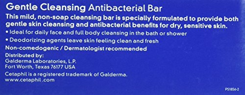 Cetaphil® antibacterial bar is a non-soap formulation that's milder than antibacterial soaps. It's designed especially for cleansing dry, sensitive skin and is ideal for bath or shower use. Non-comedogenic so it won't clog pores. Contains no harsh ingredients that might dry or irritate the skin.