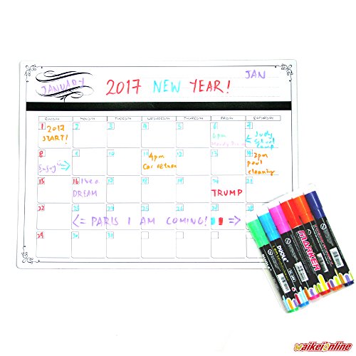 Its 16" x12" size and thickness mean it will fit & stay on any fridge without losing its magnetism. The magnetized red & blue dry-erase markers have thin tips so your writings are always neat & legible.