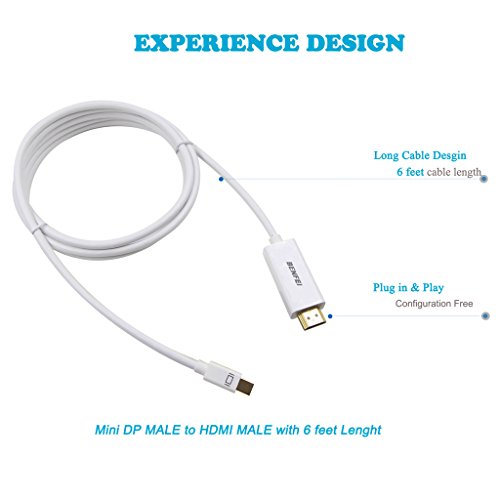 BENFEI 6 Feet Mini DP DisplayPort Display Port Thunderbolt Male to HDMI Male Long Adapter Cable for MacBook PC