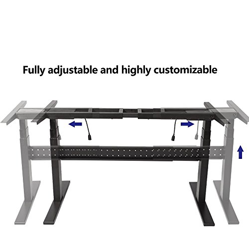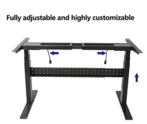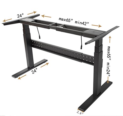 -. Feature : STEEL DESK FRAME - Easily adjusts from sit to standing with a smooth crank adjustment from 23.6" - 49.2" (without top) at 1-4/second / COMPATIBILITY - Adjustable height desk's measurements:Wide:65"-42" Inch, High:65"-24" Inch.The frame's size is suit for many kind of tables. / SOLID SUPPORT - Standing desk frame can be removed and stored.All steel construction and a thick leg support system with a load capacity of 132 lbs / DESIGE-Unique hidden power cord holder under the front panel,can keep your ergonomic standing height adjustable desk clean and organized.Avoid the risk from drop the computer accidentally. / TELESCOPIC HEIGHT ADJUSTMENT-Steel desk is recommended by doctors and health experts as ideal for office use to maximize productivity, increase stamina and energy through standing and reduce fatigue, discomfort, neck and back pain caused by static posture or prolonged sitting.