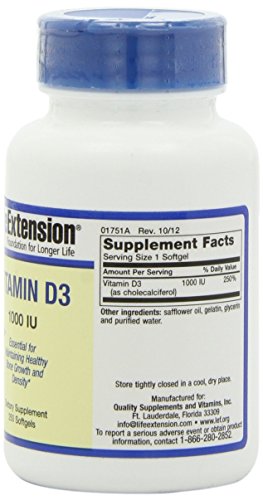 Vitamin D3, 1000 IU, 250 sgels by Life Extension (Pack of 2)