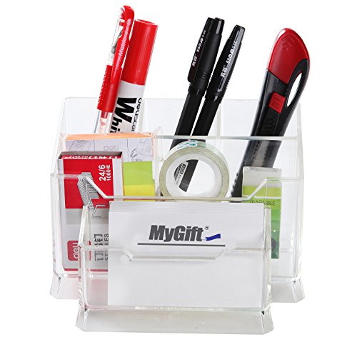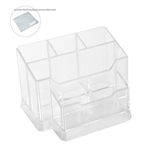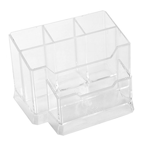 - Feature : A clear, compact, multipurpose organizer and storing items to make them more accessible. Works great for bathrooms, dresser tops, and kitchen tables. / 5 Compartment organizer perfect for storing pens, pencils, rulers and other desk accessories. / Make anything from office supplies to makeup accessories more accessible. / Includes microfiber cleaning cloth. / Approximate Dimensions: 4" H x 6" L x 4.5" W.