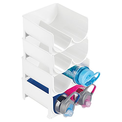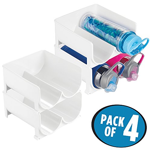 mDesign Stackable Water Bottle Storage Rack for Kitchen Countertops, Cabinet - Holds 8 Bottles, White
