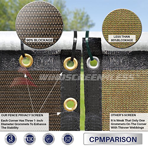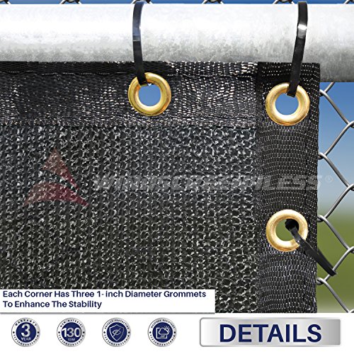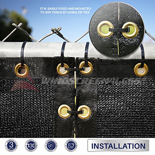 Windscreen4less Heavy Duty Privacy Screen Fence in Color Solid Black 8' x 50' Brass Grommets w/3-Year Warranty 130 GSM (Customized Sizes Available)