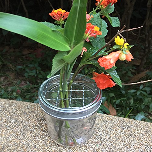 By using the metal frog regular mason jar lid insert grid organizer, any jar with the standard size mouth becomes a vase and bouquets are easy to arrange within the grids.