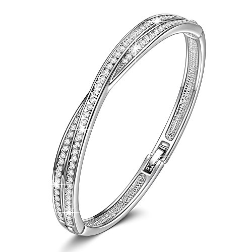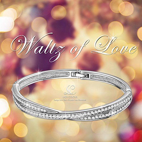 -. Title : LadyColour "Waltz of Love" Bangle Bracelet With Clear Swarovski Crystals,Women Fashion Jewelry