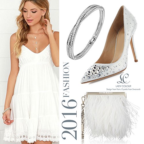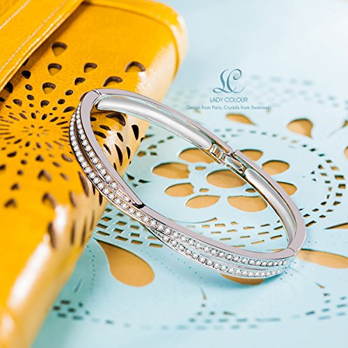 -. Feature : Updated Version: 7 inches inner circumference,a little bit bigger than the older version,which is 6.5 inches inner circumference as the product review shows / Sparkling in clear crystal,it adds an irresistible sparkle to your everyday look or a refined touch to a work outfit / Treat yourself or someone special to this "Waltz of Love" bangle / Made with Swarovski crystals:crystals supplied by Swarovski but used by our own designers and manufactured in our own workshops.This jewelry belongs to LadyColour,not Swarovski / Come in an elegant jewelry gift box