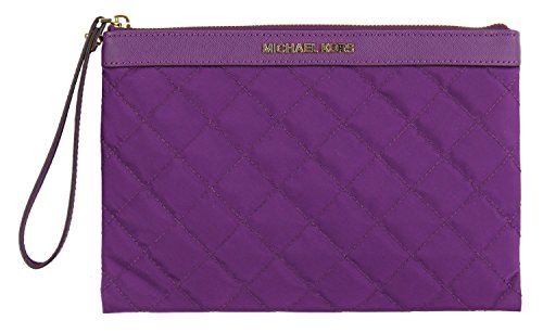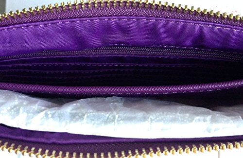 -. Feature : Violet purple color / Gold-tone accents, Zipper closure / Interior â€" 1 large slip slot, 1 zipper pocket, 6 card slots, Exterior â€" metal embellishment / Length 10.5â€/26.25 cm, Depth 1â€/2.5 cm, Height 7â€/17.5 cm / Fabric: Leather, Nylon